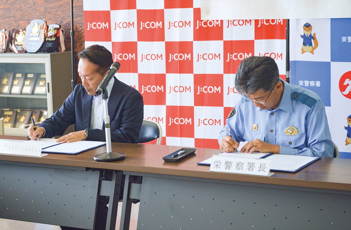栄警察署(大窪太郎署長)と株式会社ジェイコム湘南・神奈川 南横浜局(川上芳徳局長)はこの度、「地域安全に関する協定」を結び、9月26日に栄警察署内にて締結式が実施された。