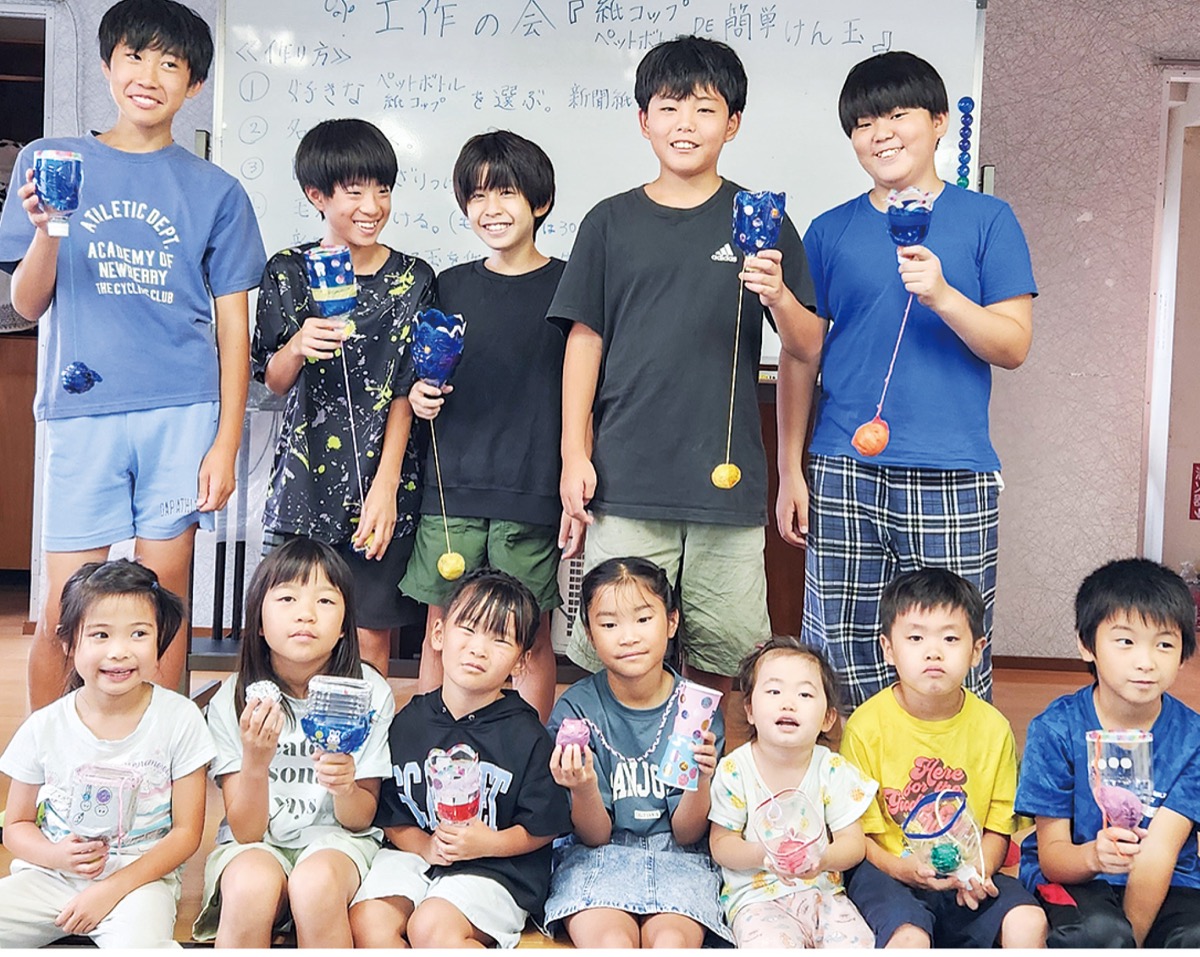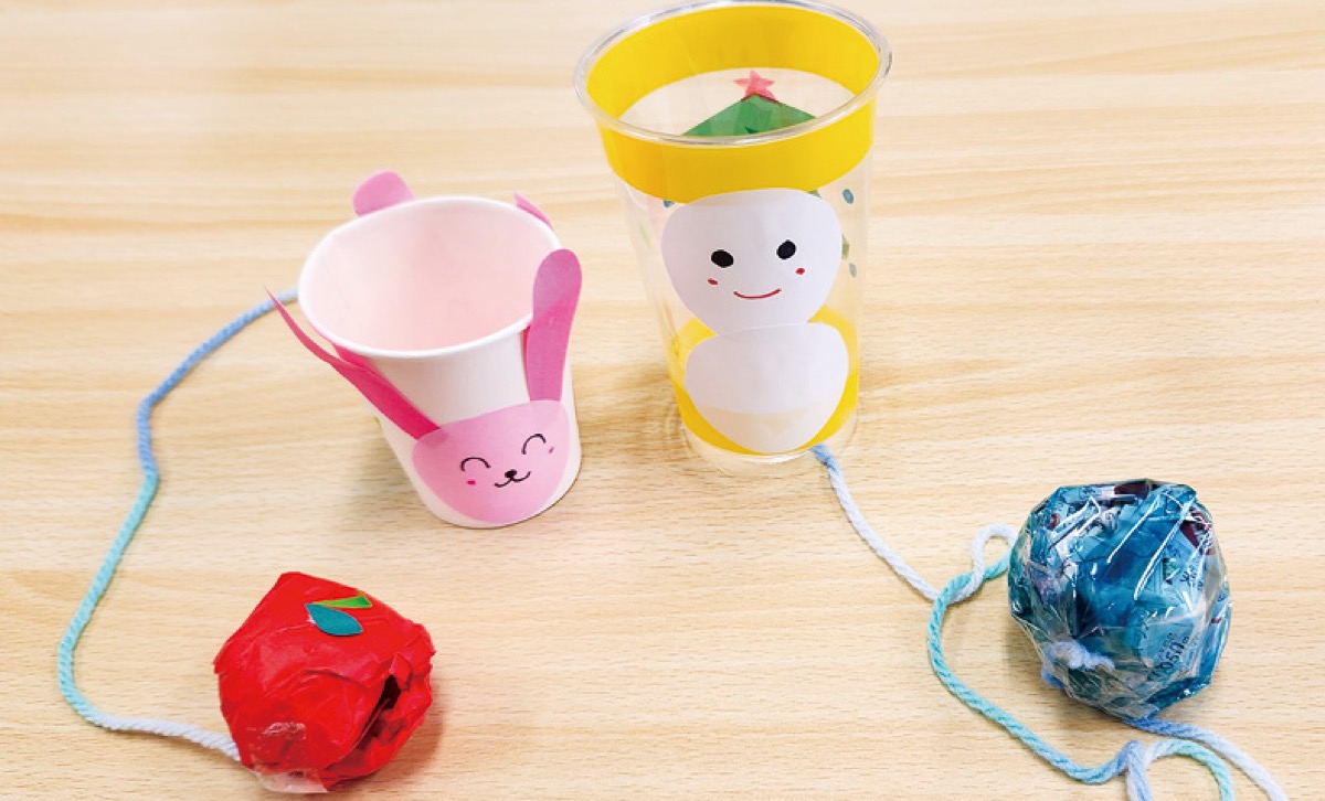 当日は未就園児から小学生まで20人が参加。港南区子ども会が地域に住む児童らに楽しんでもらうために企画した。けん玉作りにはペットボトルと紙コップを使用。好きな絵をデザインしたり、セロハンやシールを貼ったりして、自分だけのオリジナルけん玉を作った。中には動物のうさぎや雪だるまの作品もあった。早速、自作のけん玉で遊んだ児童らはペットボトルや紙コップに玉が入ると「入った〜」と大きな声で喜んだ。