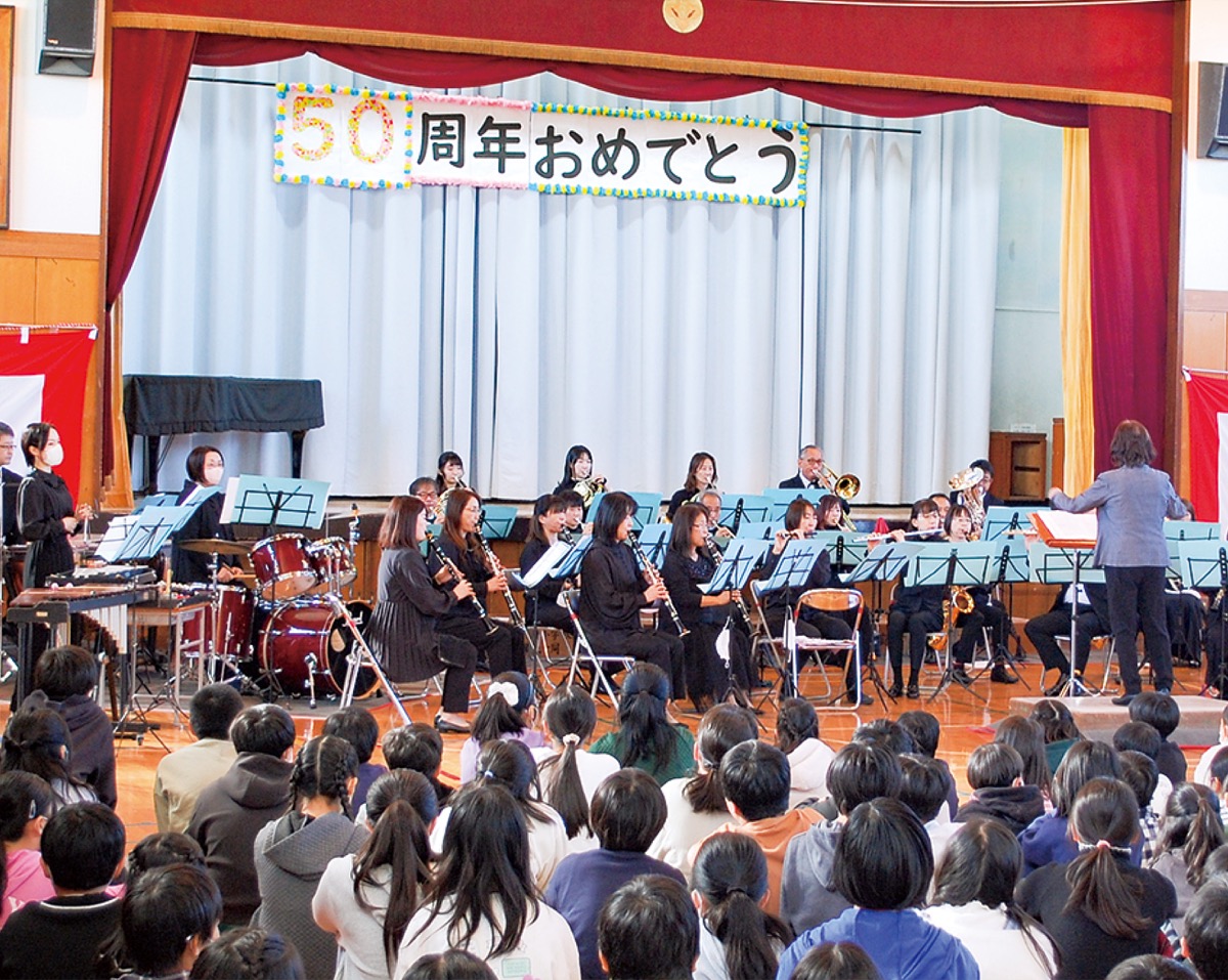 祝辞を述べた日野南連合自治会の上田昭則会長は「この式典には学校と関わりのある地域の皆さん全員が出席しているわけではないですが、この場にいない多くの人もお祝いしてくれていると思います。改めて創立50周年おめでとうございます」と話した。
