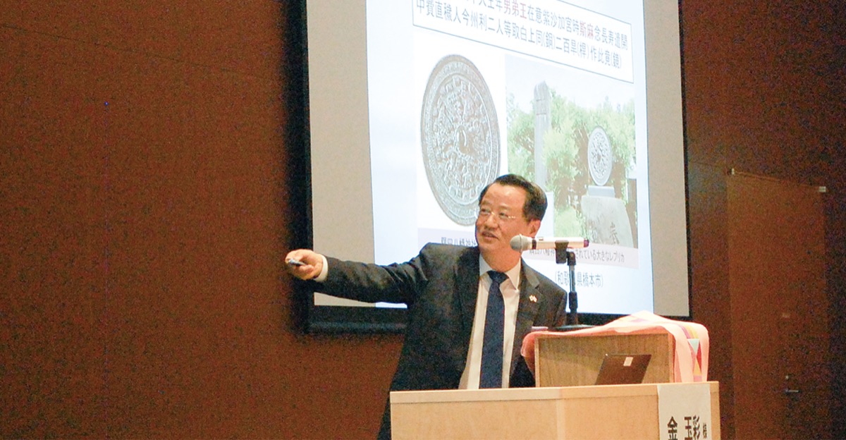 講師を務めたのは駐横浜大韓民国総領事館の金玉彩総領事=写真。当日は「日韓・韓日『古代交流史』の理解と真の歴史和解」をテーマに金総領事の独自の視点から日韓関係について語られた。