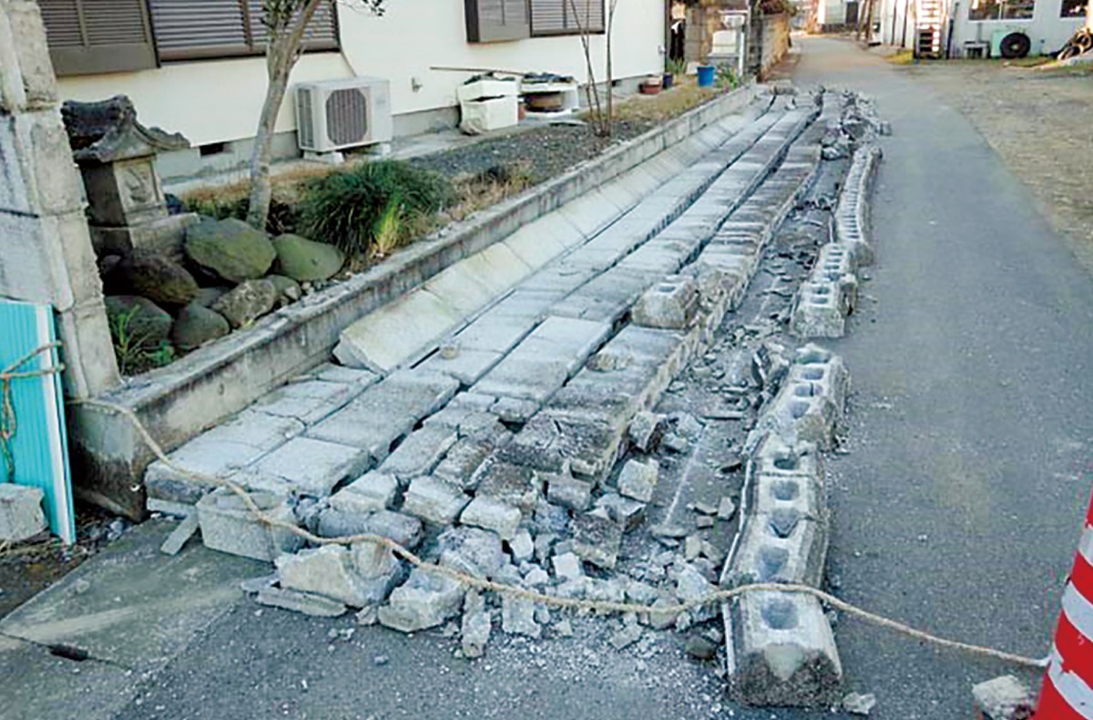 また強い地震の際には家の外まわりにも危険が潜む。2018年に発生した大阪北部地震では小学生が倒壊したブロック塀の下敷きになり死亡するという痛ましい事故が起きた。さらに、直接的な人的被害はなくても、ブロック塀や石積みの塀が道路を塞ぐと緊急用車両の通行を妨げることとなり、間接的に人命に関わることも考えられる。