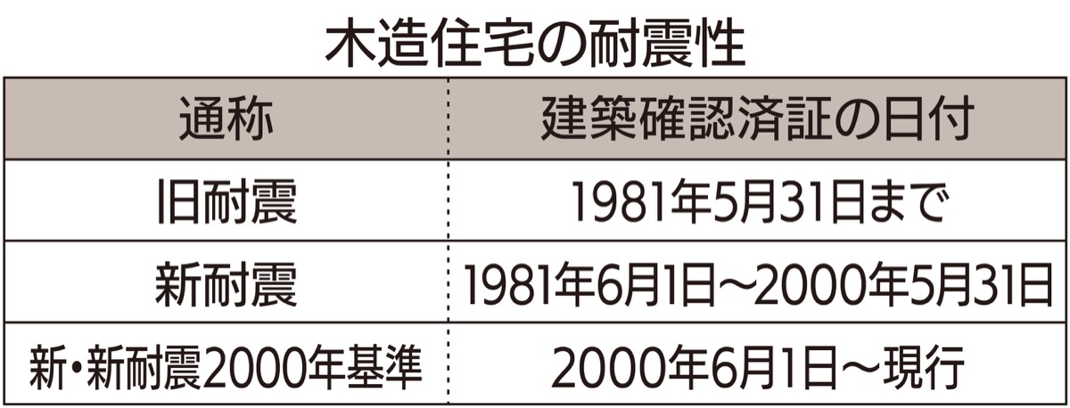 木造住宅の耐震性能は建築時期により主に3種類に区分される。1981年5月末以前の「旧耐震」、1981年6月から2000年5月末までの「新耐震」、そして現行基準である「新・新耐震2000年基準」だ。畠山さんによると「どの耐震基準にしたがって建てられたかによって耐震性は大きく異なる」という。