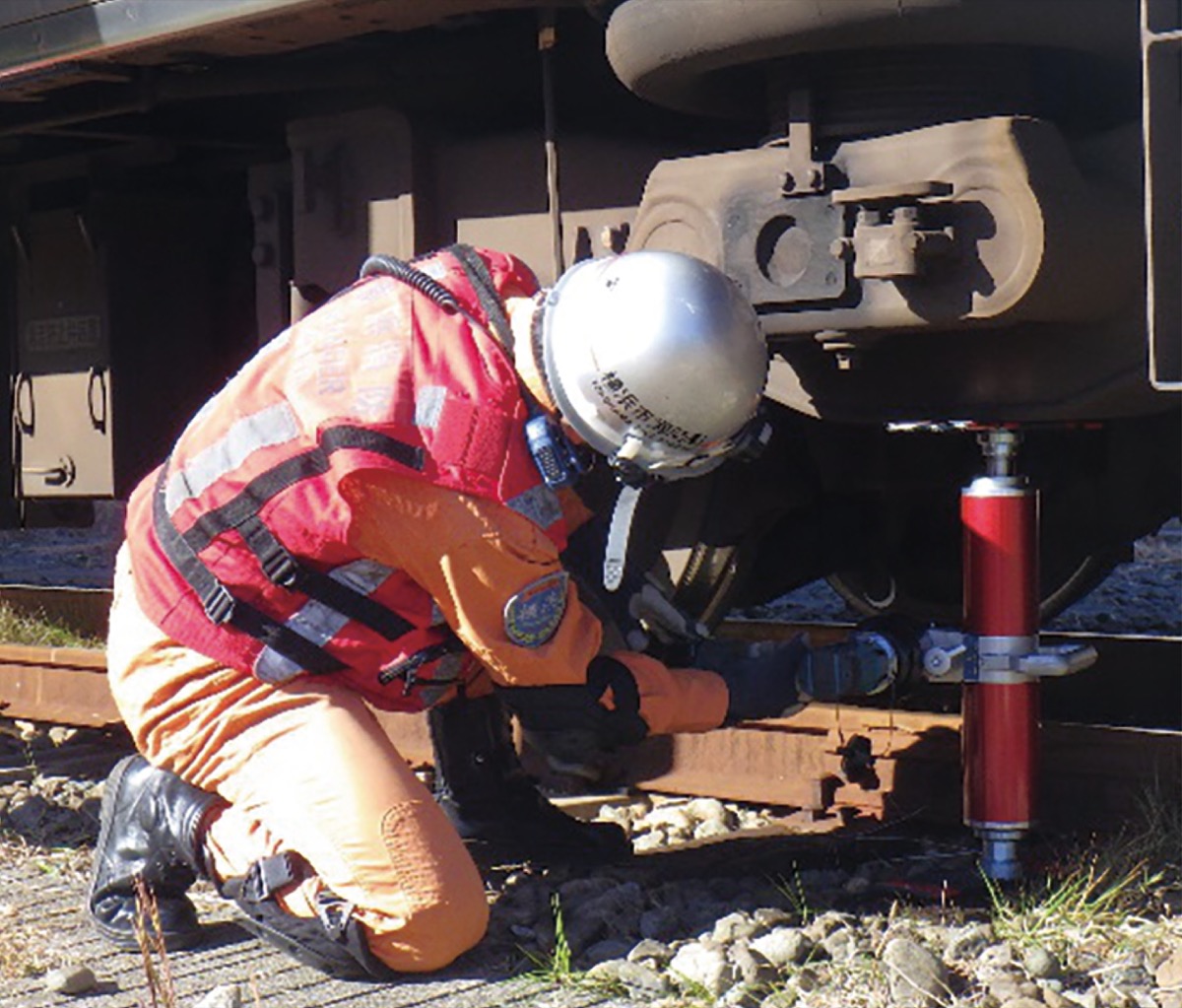 その後、列車事故を想定し、持ち上げた車両からの傷病者救出方法などを確認した。