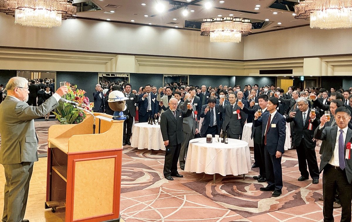 横浜市や神奈川県内を中心に年間100棟以上を新築する地域の建設会社、根本建設(株)の新年賀詞交歓会がローズホテル横浜(中区)でこのほど行われ、関係者ら280人以上が参加した。