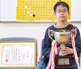全国こども囲碁普及会主催の「ボンド杯第28回全日本こども囲碁大会全国大会」に栄区囲碁普及会(三箇豊会長)から小学生以下の部門に出場した中山翼さんが初優勝を収めた。4月6日、同会の「本郷日曜子供教室」において中山さんから優勝報告があった。