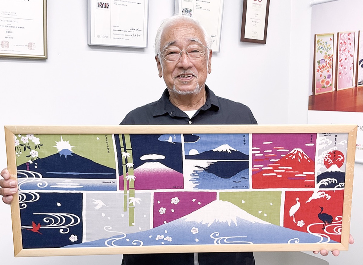 こう話すのは、横浜ならではの「濱文様ブランド」の手拭いやハンカチなどの商品を生み出す(株)ケイス(港南中央通)の加藤好男代表取締役会長(78)だ。加藤会長の父親である清さんが、昭和23(1948)年に清捺染工場を創業させ、今に至る。「上大岡の日能研があるところで始めた」と加藤さん。桜岡小出身で、大学卒業と同時に家業を手伝い、42歳の時に社長に就任し、会社の規模を大きくした。型紙に図柄や文様を彫り、型紙を通して色糊を押印・加工する「捺染業」が最盛期には「横浜市内に100社以上あったよ。(区内では)数えるほどになった」と語る。染色後の洗浄に多量の水が必要なことから、大岡川沿いに捺染や染色工場が隆盛していた。