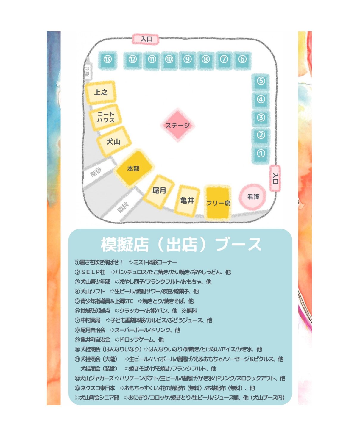 「地元 元気あふれる夏まつり」と題したイベント。当日は上郷小学校「ソーラン節」、犬山キッズ「ダンス」、鎌倉女子大「エイサー・ダンス」、昇龍「和太鼓演奏」などに加え、盆踊りも実施。時間は午後8時迄。雨天時は27日に順延。