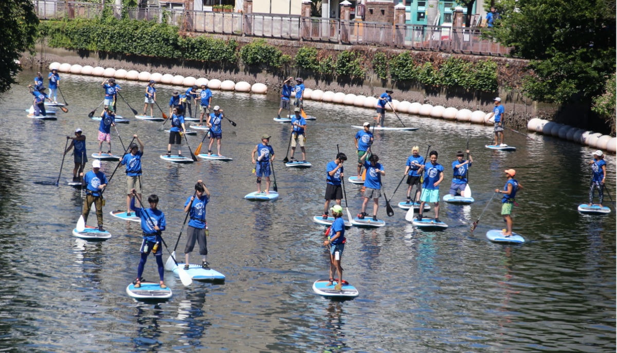 市選挙管理委員会が企画したもので、SUPの普及や川の清掃活動を行う「横浜SUP倶楽部」と大学生や高校生などの若者選挙啓発団体「イコットプロジェクト」「イコットJr.プロジェクト」のメンバーを合わせた約40人が参加。