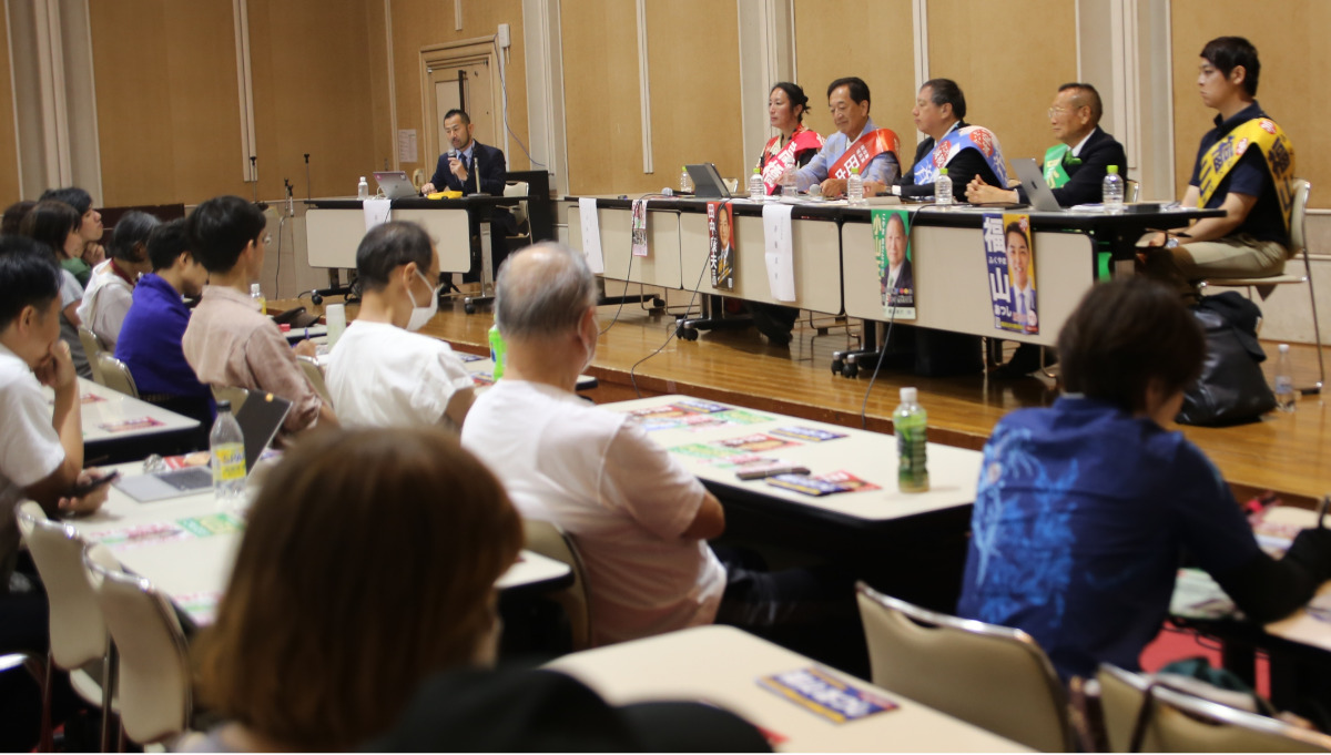 横浜市長選(8月3日)の立候補者によるネット討論会が7月24日に市内で行われた。