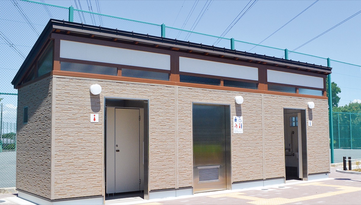 新設されたトイレは女性用、男性用、多目的トイレの3種類。防犯面を考慮し、脇には街灯を設置し、トイレ出入り口付近を映すための防犯カメラも取り付けた。
