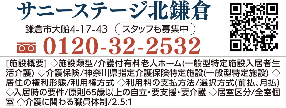 大船駅と北鎌倉駅の中間の大船4丁目に昨年4月1日、介護付有料老人ホーム「サニーステージ北鎌倉」が開所した。創業100年を超える総合建設業、(株)小俣組が手掛ける。5階建てで、100室を整備する。