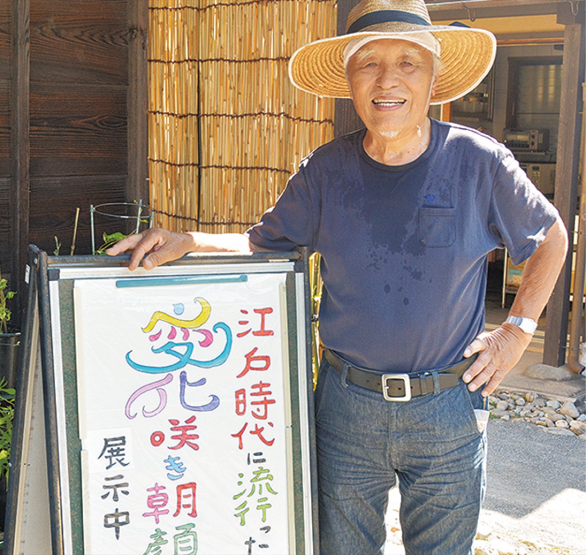 嬉々とした声で来場者に説明するのが、本郷ふじやま公園(栄区鍛冶ケ谷)のボランティア、木村治夫さん(88)だ。江戸時代にブームが起きたという『変化朝顔』に興味を持ち、木村さんが同園内で種から育て珍しいものを展示している。