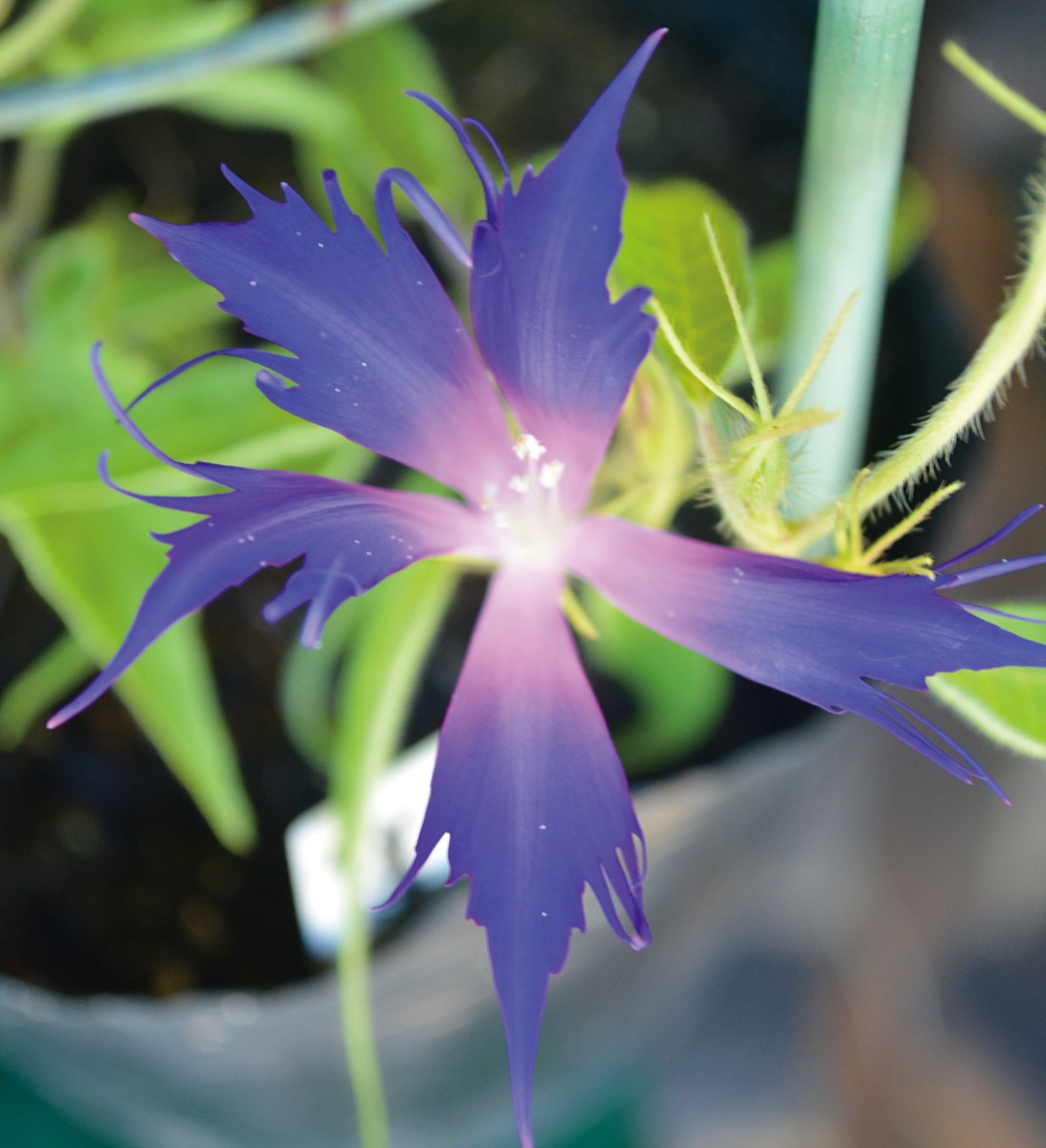 ある図鑑によると、変化朝顔とは遺伝子変異によって葉が尖ったり、縮れたり、花が割れたりする朝顔の総称。