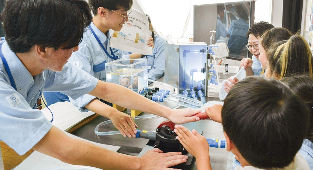 千秀小学校のキッズクラブに所属する約20人の児童を対象に行われた同イベント。水道局は市内の放課後キッズクラブと連携して、昨年度からイベントを実施し、今年度は5校で出前授業を開催している。また、今夏からは新たに製作した「水圧模型」を使用して、高台にある住居などに水を届けるポンプの説明を実施。