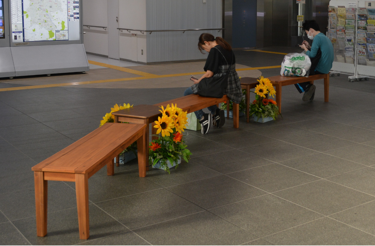 これは同区が今年度から展開する「区役所ii―BASHO(いいばしょ)づくり事業」の一環。区には以前から「手続きに来た際に、休憩できるスペースが欲しい」との要望が寄せられていた。さらに区が、昼に地域作業所などが販売している食品を食べる場所が無いことを課題に感じていたこともあり、今回の休憩スペースの整備に至った。今回設置されたのは8つのベンチ、4脚のイス、2つのテーブル。また、7月にはアイスクリームの自動販売機も設置されている。今後も来庁者がボトルを持ち込み、給水ができるウォーターサーバーの設置など、設備の充実させていく予定だ。