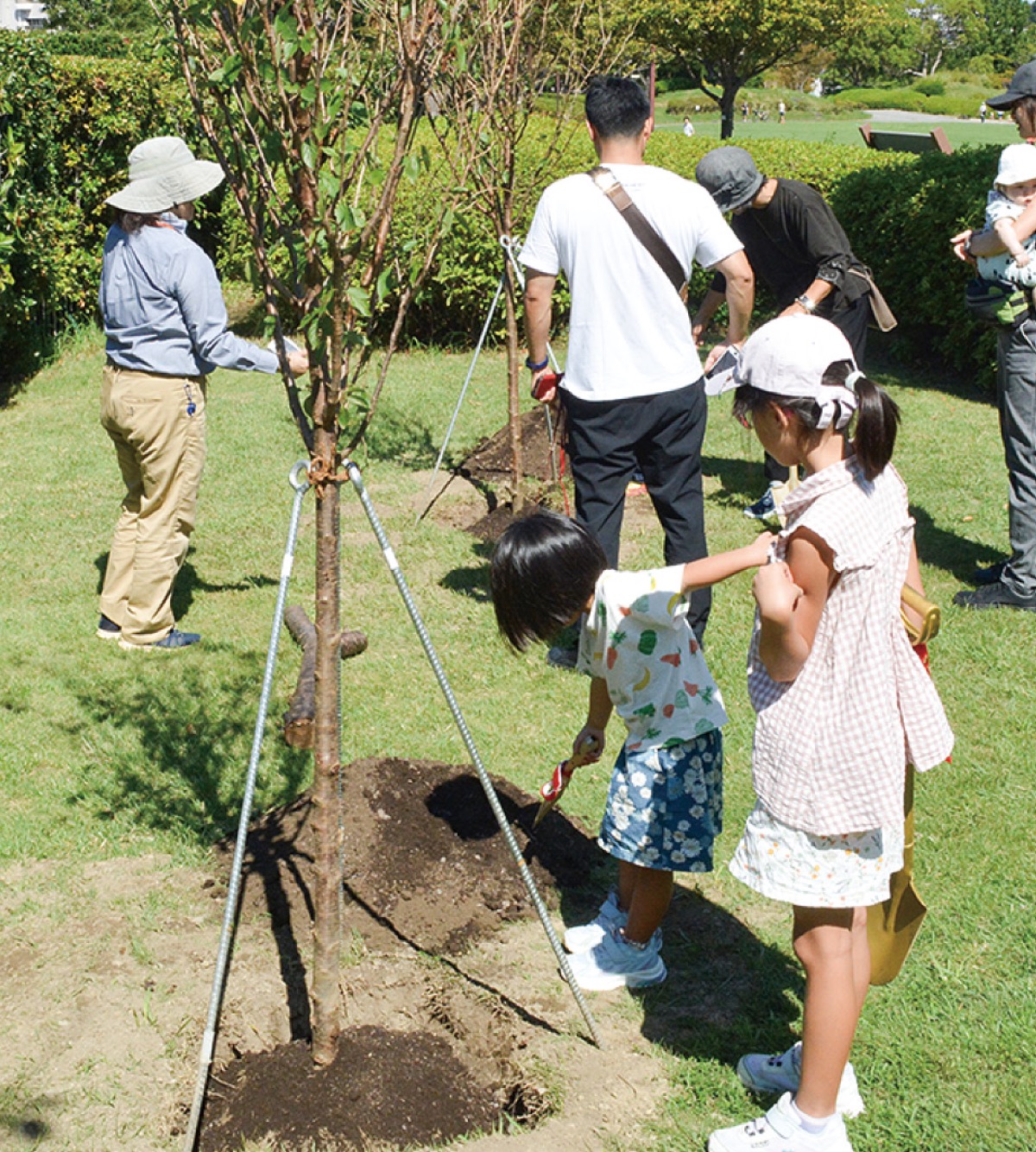 35周年記念植樹イベントは同公園テニスコート横にある小高い丘エリアで開催された。主催者は、同公園の指定管理者の横浜緑地・アライグリーンパートナーズ(代表企業・横浜緑地(株)/構成員・アライグリーン(株))ら。