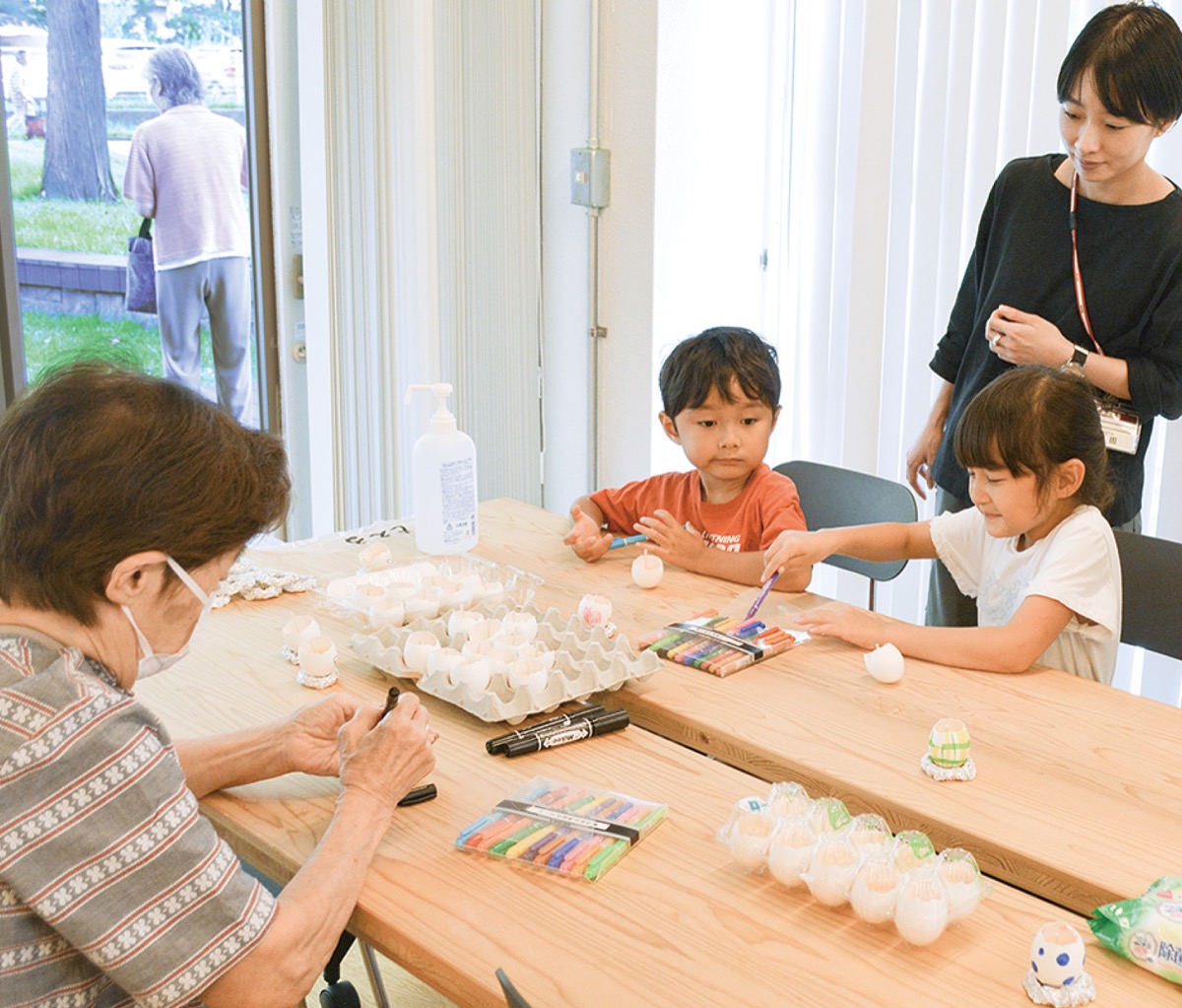 港南台にあるかもめ団地内の集会所で9月27日、地域住民の交流を目的とするイベント「かもめマルシェ」が開催された。UR都市機構と(株)MUJI HOUSEが主催する同イベントの中で、卵の殻を利用したキャンドルに絵を描くワークショップが無印良品港南台バーズの企画・運営の下で行われた。