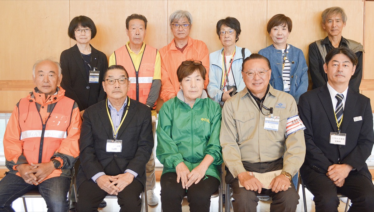 発災時に地域を可能な範囲で手助ける災害時協力事業所の登録制度「こうなん災害時協働隊」の複数社が10月11日、笹下中学校地域防災拠点運営訓練に参加し、マイクロバスなどを利用した要援護者搬送に協力した。