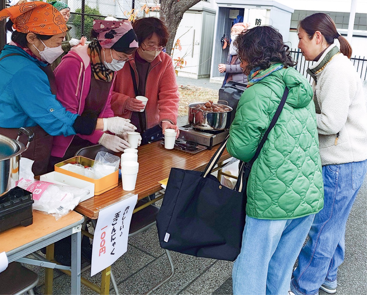 また、さかえのまるしぇには複数の企業・団体が出店。栄区の友好交流都市である青森県南部町のりんごに加え、おしるこや玉こんにゃくなどのフードも販売。朝から、多くの人が訪れた。