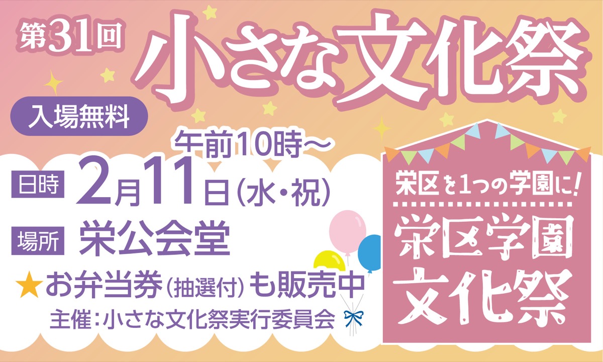また、35年前に父と始めた小さな文化祭も、今年2月11日に31回目を迎えます。ジャンルを超えて尊重し合う文化交流は、栄区の品格を育てる大切な土台です。