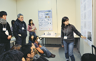 一日目には、同エリアで毎週行われている「炊き出し」のボランティア体験やガイドツアーでエリアを回り、夜は実際に3畳一間の簡易宿泊所へ宿泊。2日目は、建築家で寿町のまちづくり「寿作戦」を牽引している丸山美紀さんによる活動報告など行われた。現在整備が進められている「寿公園」や「労働福祉会館」について模型を使って説明がされると、参加者からも質問や意見交換が活発に行われた。