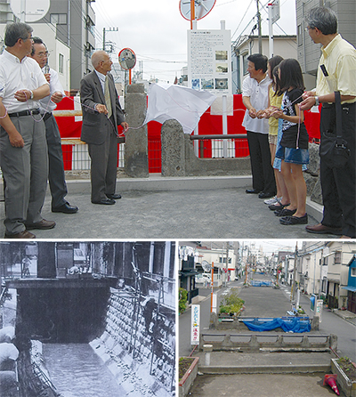 「昔この川は地域の子どもがトンボを追いかけ、大雨のあとには上流から流れてくる鯉や鮒をみんなで夢中ですくうような風情のある川でした」。除幕式で懐かしそうに当時を振り返ったのは上野町1・2丁目東部自治会の厚浦千尋会長。