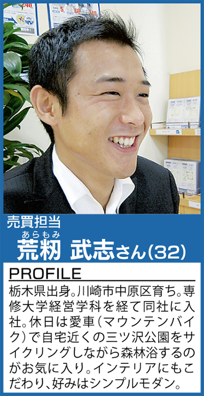”じっくり時間をかけて”が自分スタイル。生活習慣や趣味、今の家に対する不満などを一通り聞いてから提案するため「数時間話込んでしまうこともありますね」と笑顔。「自分が関わった全てのお客様との出会いを、心に残るものにしたい」。理想の家探しをバックアップしてくれる心強い存在だ。