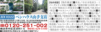 間取りは3LDKで、JR「石川町」駅からバス12分「和田山口」停歩2分。横浜や桜木町へのバス便も多く、買い物に便利なイオン本牧は約150m(約2分)。緑が多く周辺には公園が点在するなど子育てファミリーに最適な環境だ。「パークシティ本牧の中でもリビングから並木通りを見渡せる数少ない部屋です。内覧もできますのでお電話下さい」と担当者。その他物件はホームページにて。