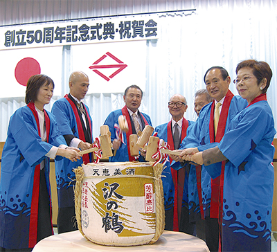 式典で佐々木校長は「50年という歴史の節目を皆さんとお祝いできることに感謝します。これからも心豊かで自立心のある生徒の育成に尽力していきます」と挨拶。西区第6地区の渡辺輝夫会長も「地元としても今後も協力して学校を応援していきたい」と話し、最後は関係者らが鏡開きで節目を祝った。
