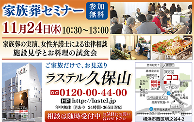 「自分や家族の葬儀は大げさではなく、家族や身内だけの家族葬にしたいと思って参加しました。相続の悩みも弁護士の先生に相談できて安心しました」と話すのは、先月西区の葬儀式場「ラステル久保山」で行われた「家族葬セミナー」の参加者。