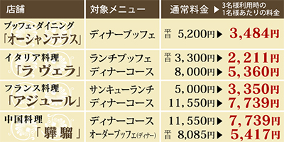 ヨコハマ グランド インターコンチネンタル ホテルでは料理代金が最大33%OFFになる大好評企画「トゥー・プラス・ワン」を9月28日(金)まで実施している。