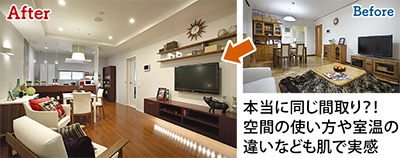 中でも注目は、築25年の一戸建てリビング、キッチン、浴室のリフォーム前後を再現した「温感ハウス」。まるでリフォーム番組のように劇的に変わった様子を体感しながら、我が家の問題点もチェックできる。