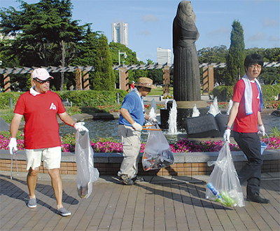 横浜中法人会が8月2日、山下公園と象の鼻パークの早朝清掃を行った。