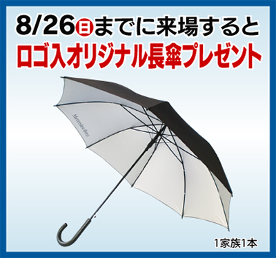 「本紙見た」で来場するとMBロゴ入りオリジナル長傘をプレゼント。週末、家族で訪れてみては。