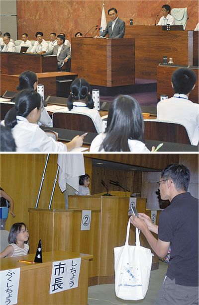 また、横浜市会では23日、小中学生を招いて見学会が行われた。子どもたちは保護者と一緒に議会の仕組みを学んだあと、本会議場の市長席や議長席に座って記念撮影を楽しんだ。