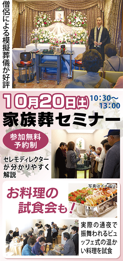 次回の開催は10月20日。セミナー後には、実際の通夜で振舞われるビュッフェ式の温かい料理の試食会のほか、浄土真宗本願寺派光明寺の松田住職によるカジュアルな法話会も行われる。
