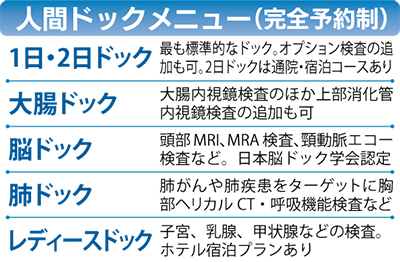1日ドックに加え、昨今の大腸がん・肺がんの増加や脳疾患への危惧から各種ドックの受診者も増えている。「総合病院併設なので経験豊富な専門医が検査し、病気が見つかった時にはすぐ治療に移れます」。