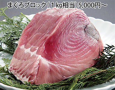 刺身用の大トロ、中トロ、赤身に1本のまぐろからごくわずかしか採れない貴重な部位(胃袋、ホホ肉、心臓)が”直売所価格”でならぶ。