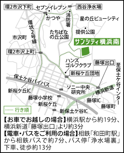 これからの「第2の住まい」を考える際、立地条件は重視される要素の一つ。「サンシティ横浜南」は、車でなら横浜駅から20分、最寄りのJR東戸塚駅から10分、相鉄・和田町駅からは7分という好ロケーションで、都心へのアクセスも抜群。横浜中心部を生活圏にしながら、みなとみらいエリアなどを一望できる住環境が魅力となっている。