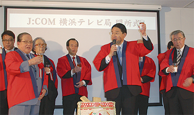 ケーブルテレビ運営会社の(株)ジェイコムイースト横浜テレビ局(中区本町・野中範郎局長)が1月に馬車道に移転し、3月15日、新局舎の開所式が行われた。関係者や地元企業経営者ら約130人が出席した。