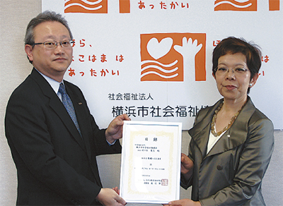 当日は、同財団を代表してみずほ銀行横浜支店の黒田耕司支店長が出席、市社協の芳賀宏江常務理事にチケットの目録を手渡した。