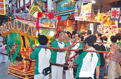 今年は午前11時から正午まで、関帝廟の神殿内で街の繁栄と安泰を願う儀式を執り行ったのち、午後5時からパレードを実施。白装束を身にまとった地元住民らが、関羽の神体をのせた神輿を担ぎ、中華街全域を練り歩く。