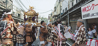 山元町をはじめとした中区第6地区の7町会が、それぞれのみこしで町内を練り歩く「連合渡御」がこのほど、2年ぶりに行われた。根岸八幡神社の祭事で、隔年で執り行われている。