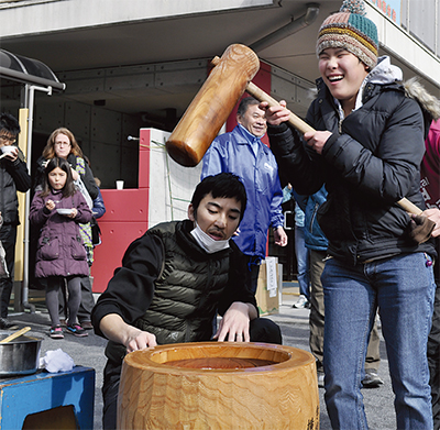 中区竹之丸の私立盲学校、横浜訓盲学院(中澤惠江学院長)で1月25日、餅つき大会が開催された。