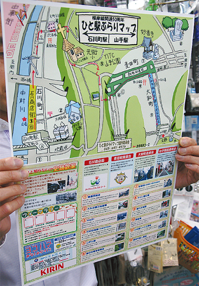 JR根岸線開通50周年を記念して、石川町駅と山手駅の周辺4商店街による「ひと駅ぶらりマップ」がこのほど完成した。地域の史跡散策コースを紹介しており、5月18日から両駅をはじめ各商店街の加盟店で計6千部配布される。