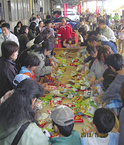 「チャリティーつめ放題企画」=写真=では、野菜とお菓子のつめ放題を開催。野菜は18歳以上の女性を対象に午前10時から(200円)。お菓子は小学生以下を対象に午後1時から(100円)。集まった収益金は、来年度の地元新入学児童を対象とした交通安全グッズ購入に充てられる。