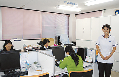 開設以来、月の平均相談件数は約20件。同相談室長で看護師の石橋好子さん=写真右=は「今までどこに相談したらよいか分からなかったという話が多かった。病院から直接相談されるケースも増え、安心して在宅医療を受けられる体制が進んできたと思います」と一年を振り返る。