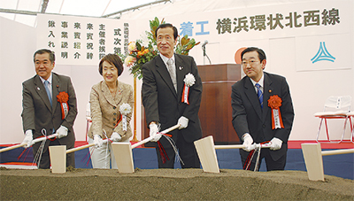 7日の着工式には、林文子横浜市長、菅原秀夫首都高速道路(株)社長をはじめ、関係者、来賓らが出席し、工事の安全を願う鍬入れ式を行った。林市長はあいさつの中で「北西線は市の都市基盤強化の根幹をなす道路になります。経済の活性化、移動時間の大幅短縮、物資輸送網として大変重要。市にとってはまさに生命線」と訴えた。また菅原社長は「いよいよ着工を迎えましたが、周辺の安全、環境に配慮し、早期完成を目指して全力を尽くしたい」と意欲を見せた。