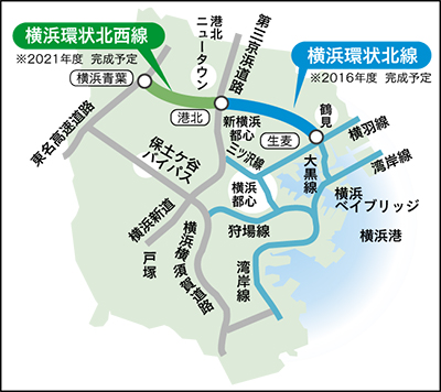 現在建設中で、16年度完成予定の「横浜環状北線」と港北ICで接続すれば、市北西部と横浜都心・湾岸エリアとの連絡が飛躍的に強化される。市の実測によると、東名高速横浜町田IC―横浜港への所要時間が保土ケ谷バイパス経由で約40〜60分かかっていたものが約20分に短縮される見込み。また、緊急車両の通行や物資の輸送などによる防災面の強化、保土ケ谷バイパスの渋滞解消などの効果が期待されている。
