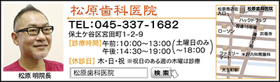 予防を重視し、”なるべく抜かない・削らない”を治療の方針としている「松原歯科医院」。”ハマのアメ横”洪福寺松原商店街に開院し、23年目を迎える同院では「お子様の乳歯の間に隙間がないのは、矯正を考えるサインです」と話し、4歳〜小学校高学年を対象に『顎顔面矯正』を行っている(自由診療/40〜60万円)。